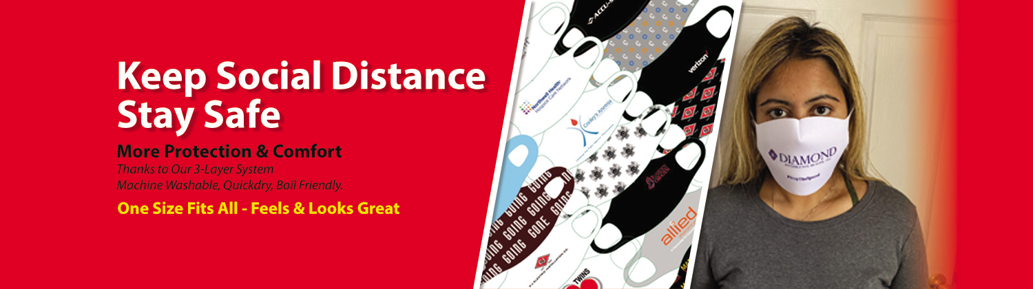 At this time, we are pleased to offer our customers a special discount on Custom Made Face Masks that are personalized with your corporate logo, image of your choice or just wording. These masks are washable and reusable and can be used as a promotional product for your business or organization.